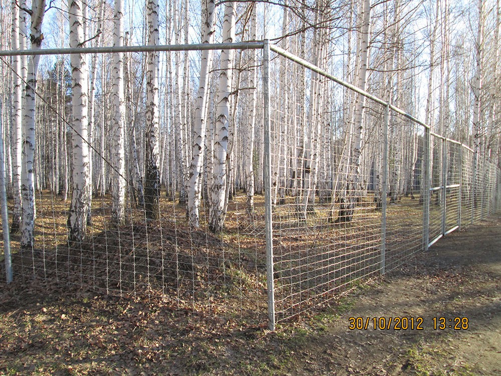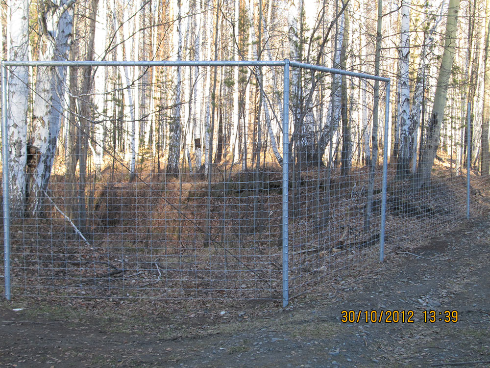 о.х. Корона Урала Свердловская обл., вольер для содержания , длина периметра 25000 м.п.: - выполнение работ по установке ограждения из сетки с фиксированным узлом h=250 см. Год реализации: 2010 г.